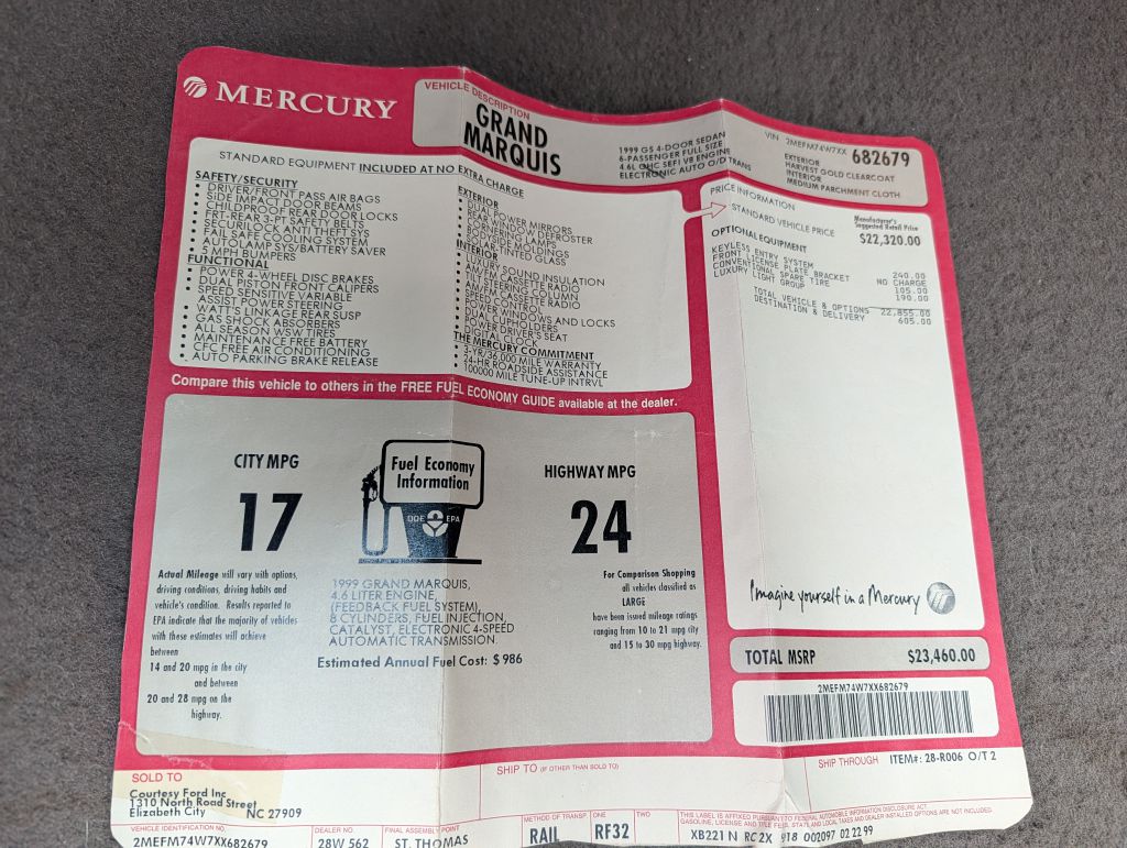 1999 Mercury Grand Marquis GS – Accident Free Carfax – Power Windows, Locks, Cruise, SUPER LOW MILES. Mike 757-560-4252 www.tmautova.com Guaranteed Credit Approval VADLR